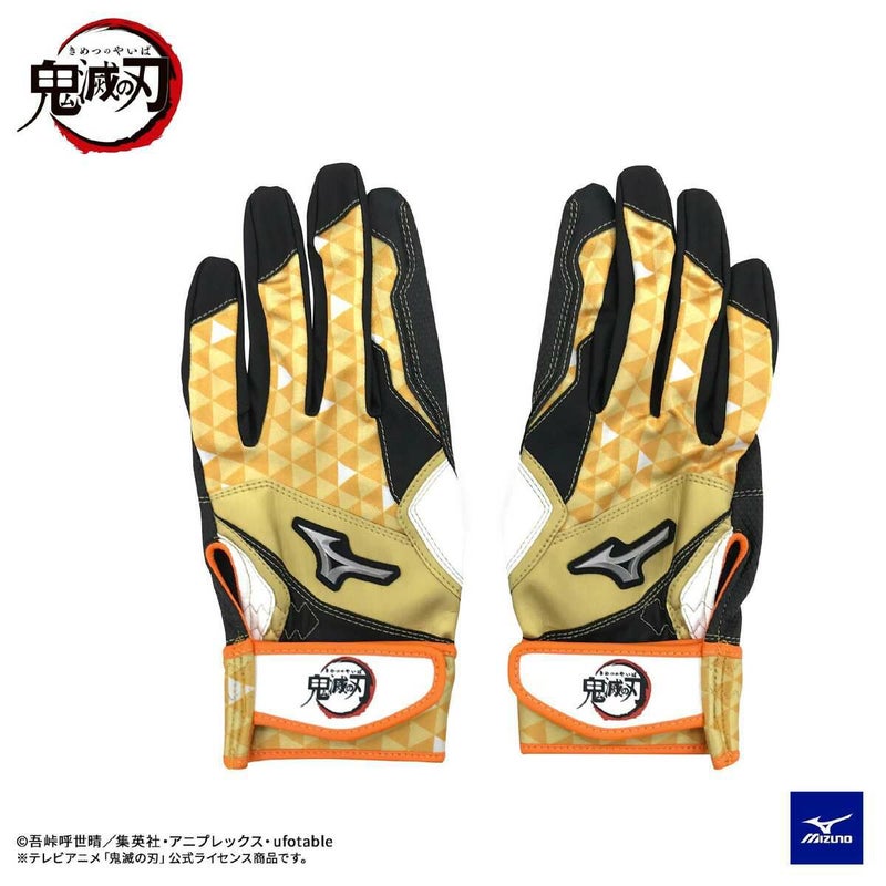 ミズノ(MIZUNO) 鬼滅の刃 バッティング手袋 両手用 ZENITSU キッズ 野球 バッティンググローブ オレンジ×ブラック 1EJRYA00 54