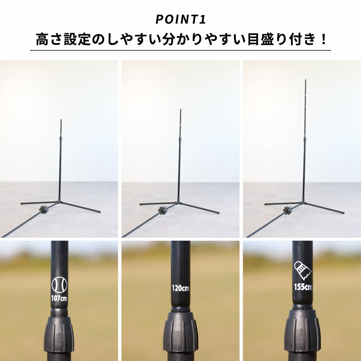 →支柱部分に高さが一目で分かる目盛り記載。