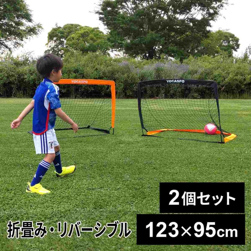 使用時のサイズは約幅123cm×高さ95cm×奥行95cmです。全体の重量は、ゴール2つ、固定用ペグ8本、収納バッグ2つを合わせて約2.6kgとなります。