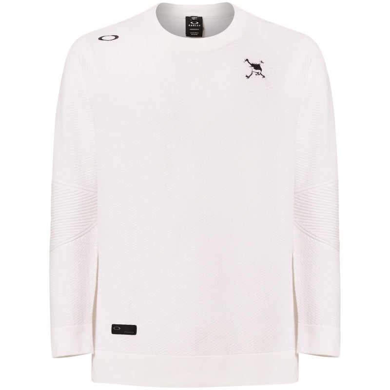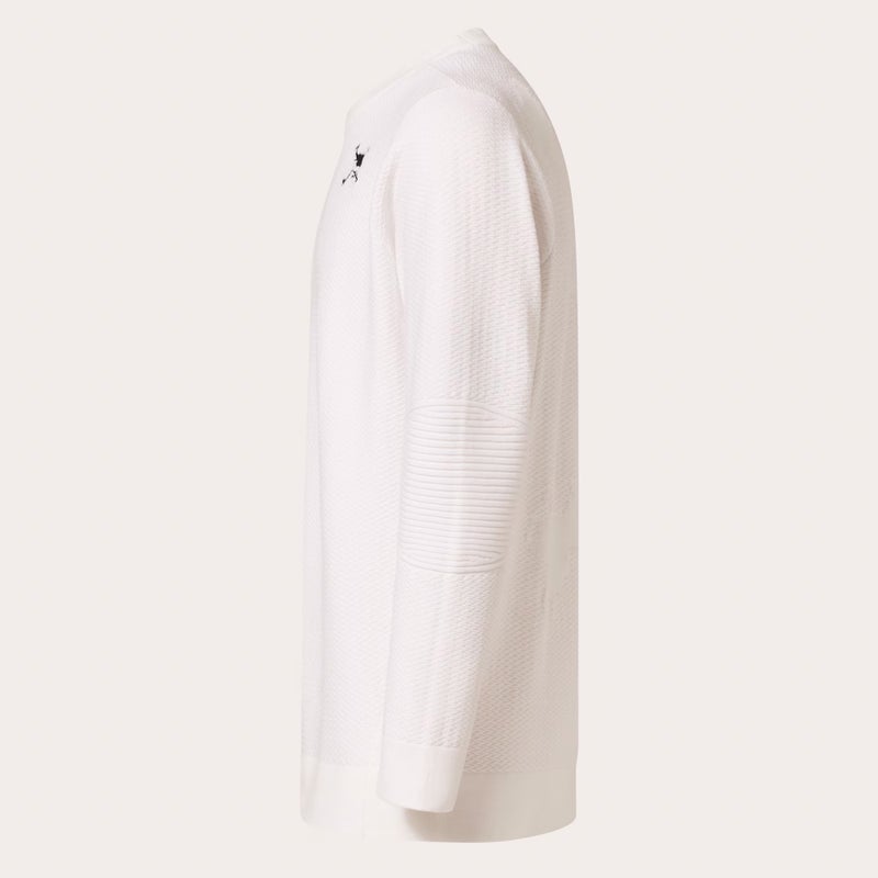優れたストレッチ性と軽量な吸汗速乾機能のポリエステル糸を採用したシンプルなクルーネックセーター。