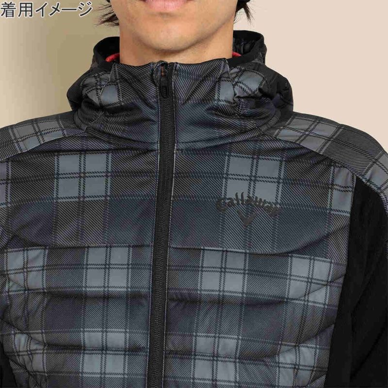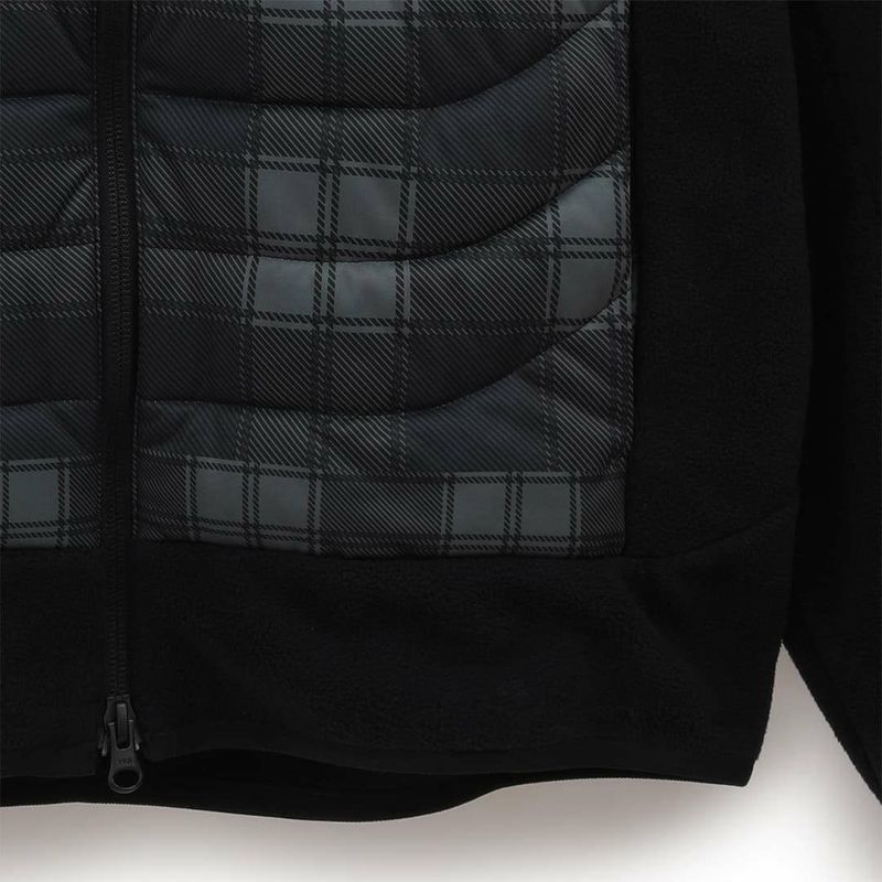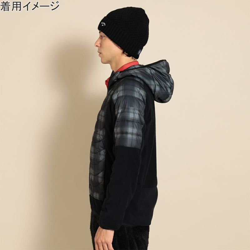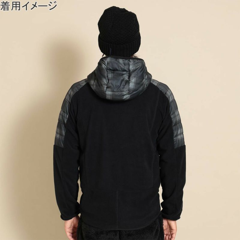 前身とフードにチェックプリントのスターストレッチ素材、袖と後身には両面起毛のフリースと、異素材をハイブリッドさせたミドラーです。