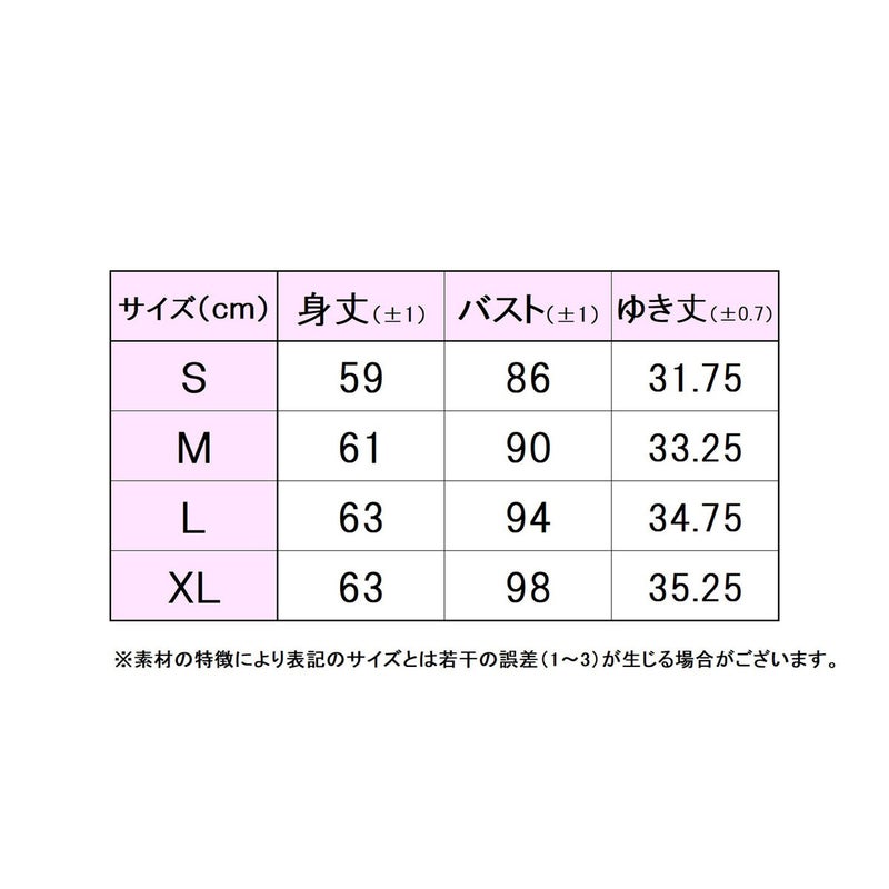 規格サイズ(cm)S:身長149-155、チェスト78-82、ウェスト61-65、ヒップ84-88