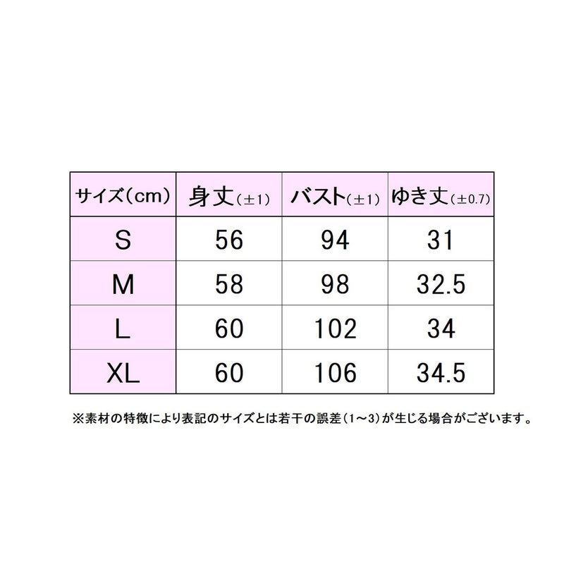 規格サイズ(cm)S:身長149-155、チェスト78-82、ウェスト61-65、ヒップ84-88