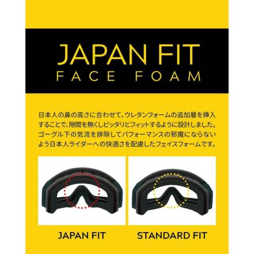 ゴーグル下の気流を排除してパフォーマンスの邪魔にならないよう日本人ライダーへの快適さを配慮したフェイスフォームです。