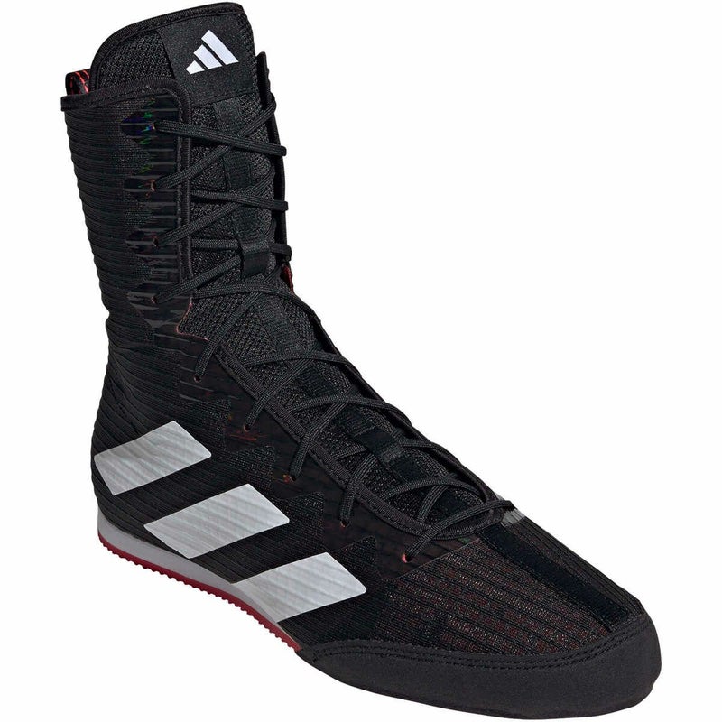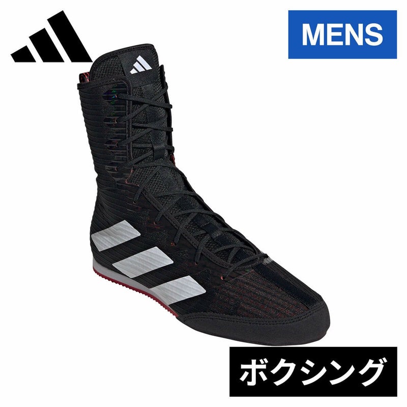 ジムやリングでお馴染みのアディダス Box Hogボクシングシューズは、通気性に優れたメッシュアッパーの内側に補強を施した、高強度の運動にも耐えられる設計。