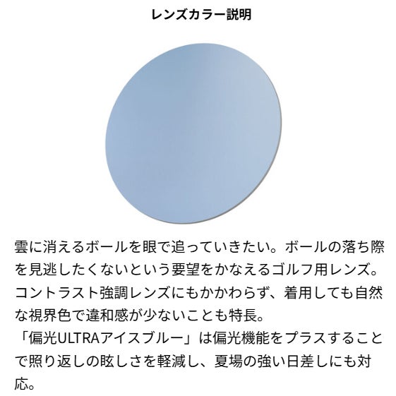 「偏光ULTRAアイスブルー」は偏光機能をプラスすることで照り返しの眩しさを軽減し、夏場の強い日差しにも対応。