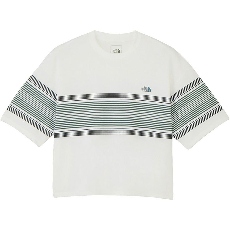 夏の強い日差しに対応する、パネルボーダーの女性用ランニングカットソー。