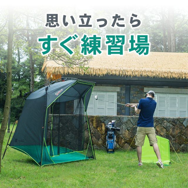 「QUICK-UP GOLF RANGE」は、思い立った瞬間に広げて練習を開始できる、革新的な家庭用ゴルフネットです。