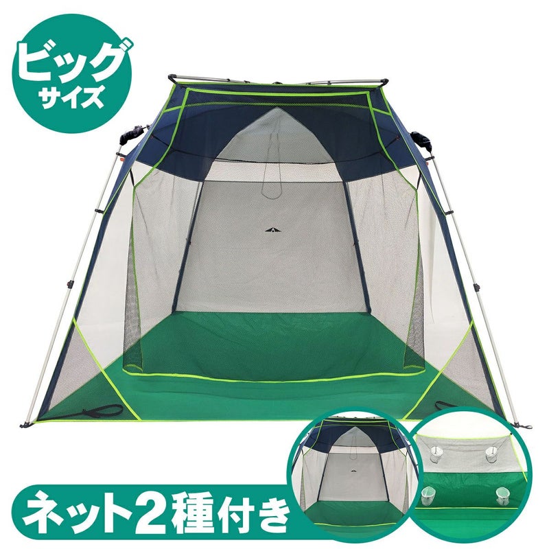 従来の組み立て式ネットとは異なり、テントのようなハブシステムを採用。