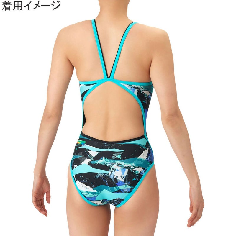 6. トレーニングワンピース オープンバック レディース 水着 ブラック×グリーン AS6SWM32L BKGR