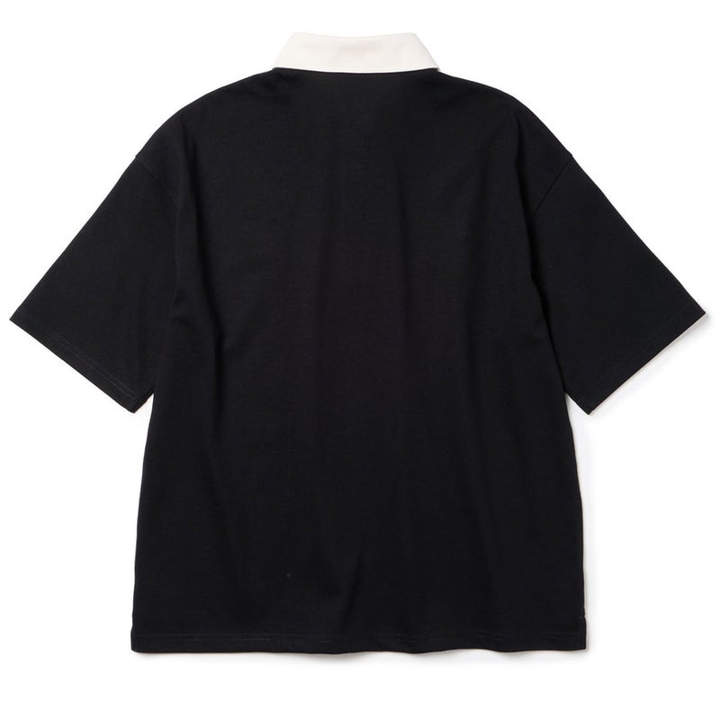 ヘビーウェイトのコットン混天竺素材を使用した、しっかりとした着心地の半袖ラグビーシャツ。