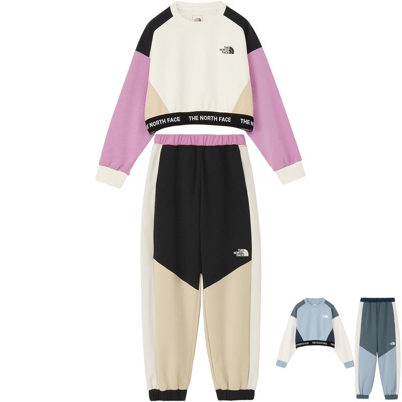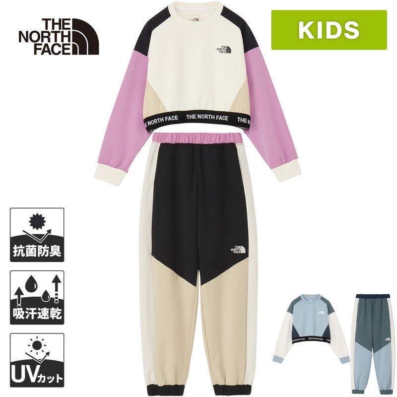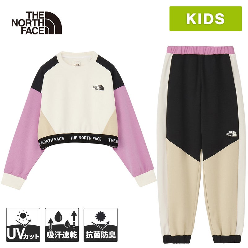 【ザ・ノース・フェイス】モーションスムージショートクルーの機能的なキッズクルーネック上下セット。