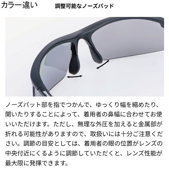 調節の目安としては、着用者の眼の位置がレンズの中央付近にくるように調節していただくと、レンズ性能が最大限に発揮できます。