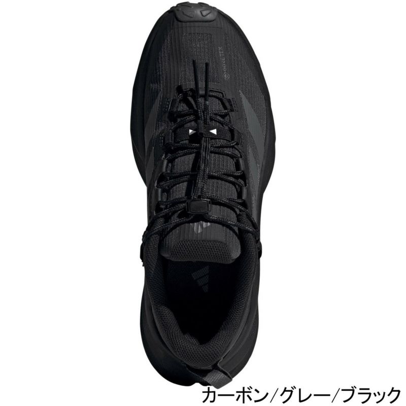 アディダスのドリームストライクミッドソールが快適な履き心地を提供し、防水性と透湿性を兼ね備えたGORE-TEXメンブレンが濡れた路面でも足をドライに保ってくれる。