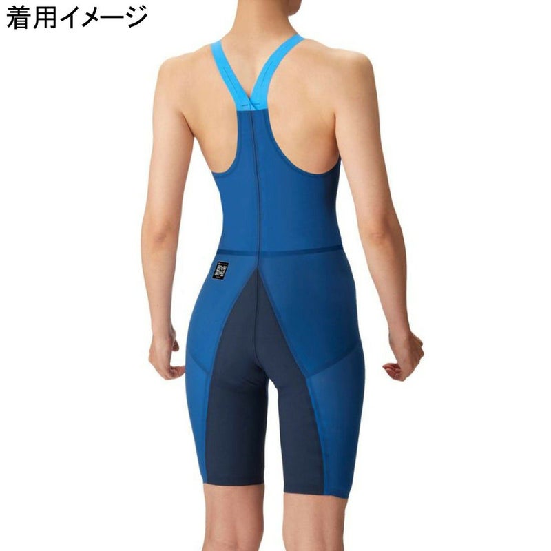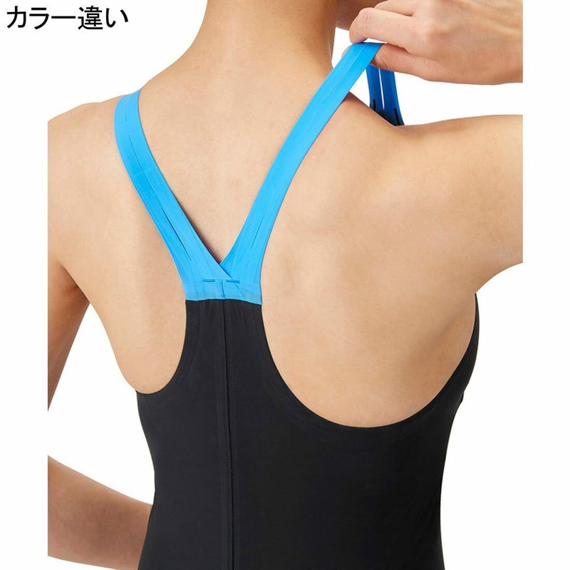 レディース水着にはアリーナダブルストラップ理論を応用した、部分的に切り込みの入った肩紐を採用。