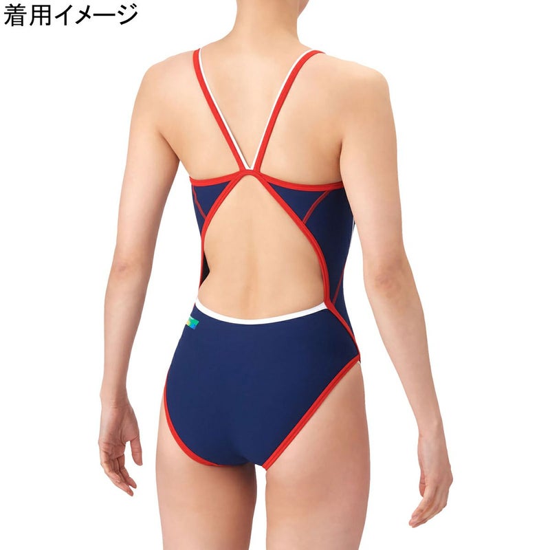 5. ★26年春夏新商品★トレーニングワンピース レディース 競泳水着 ネイビー×レッド AS6SWM01L NVRD