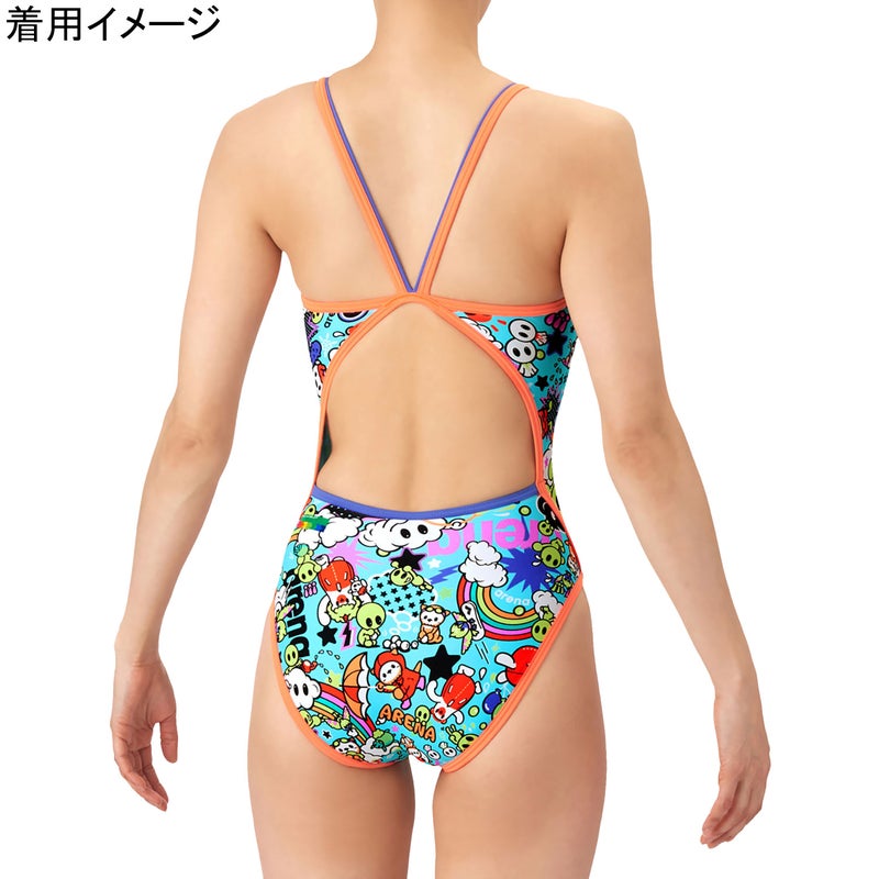 アリーナ(arena) トレーニングワンピース レディース 競泳水着 グリーン×オレンジ AS6SWM26L GROR