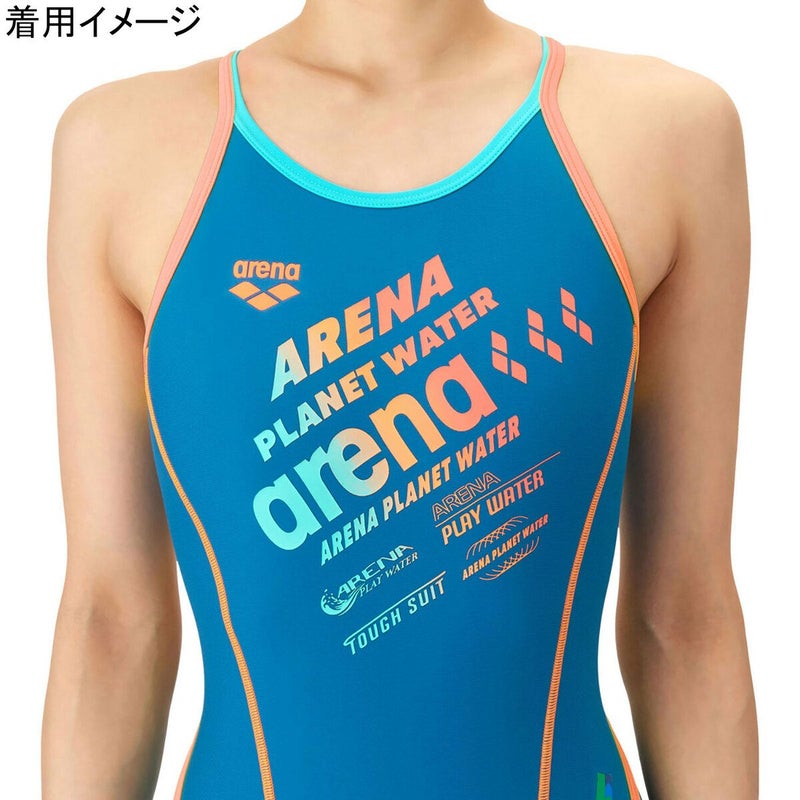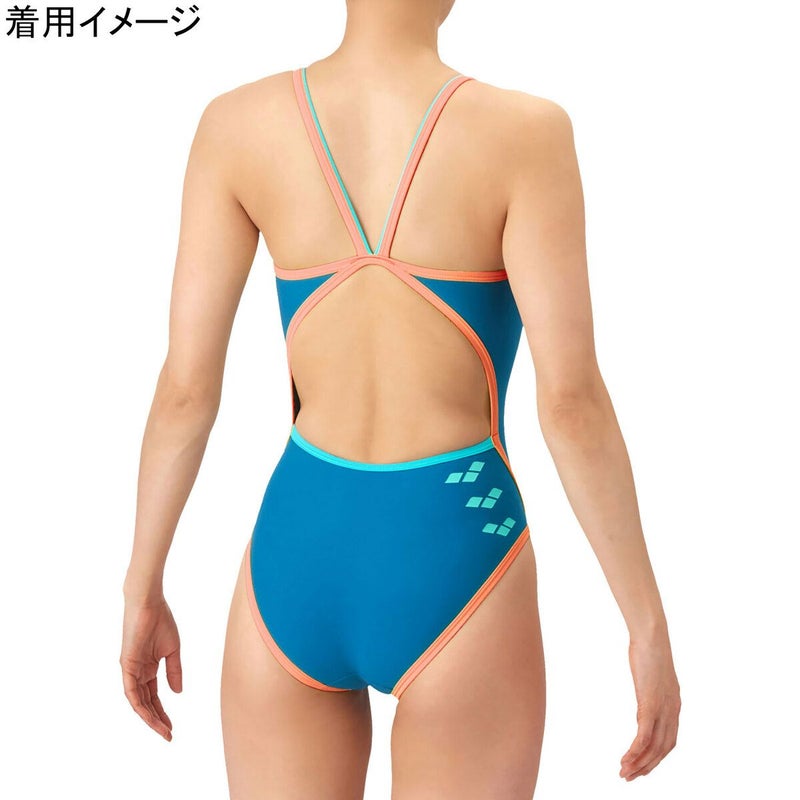 アリーナ(arena) トレーニングワンピース レディース 競泳水着 ブルー×オレンジ AS6SWM38L BLOR