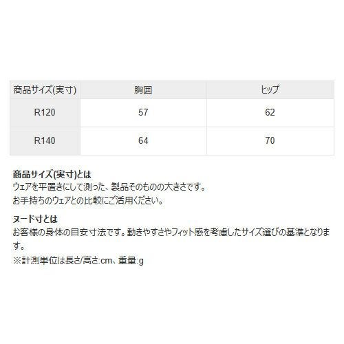 サイズ(cm)R120:身長115-125、バスト57-63、ヒップ62-70
