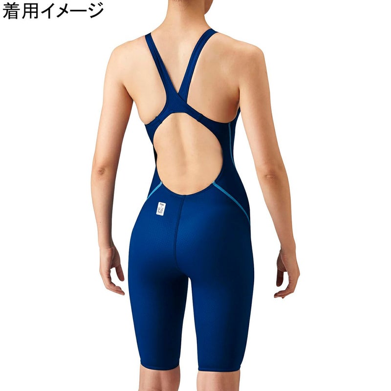 ポリウレタンを身体に巻き付く横方向に配置した素材「AQUA XTREME」を採用する事で泳ぎ易さを追求したニット素材の競泳モデル。