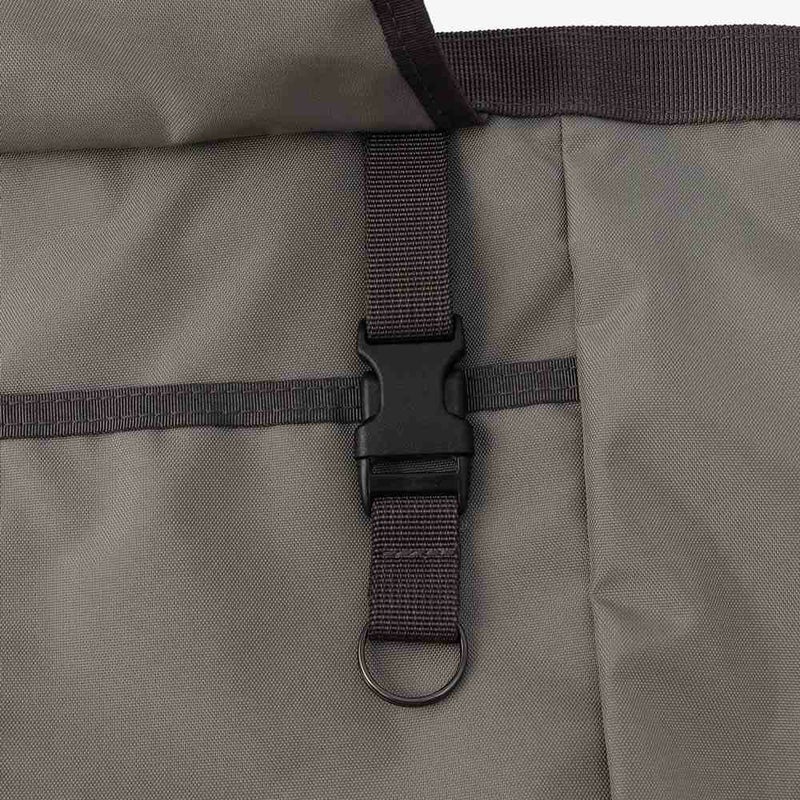 さらにはスナップボタンを配置し、荷物の容量感によって留め方を変えることが可能。