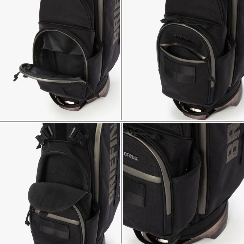 ・レインウェアなどの嵩張るアイテムの収納に便利な大型ポケット、ゴルフボール1ダースを収納できるポケット、保冷機能を備えたボトルポケットなど多数配置。