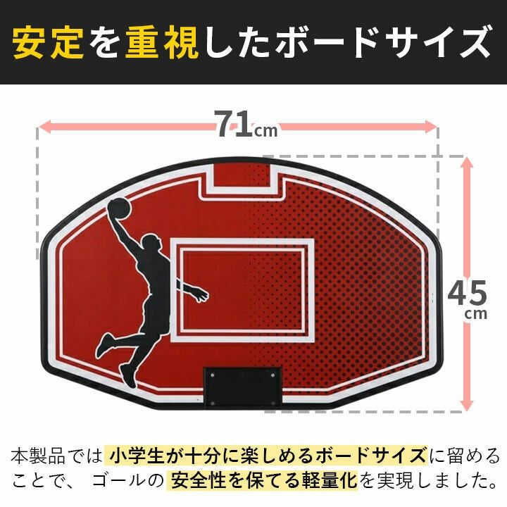 赤のバッグボードが映えるキッズ用のバスケットゴールです。