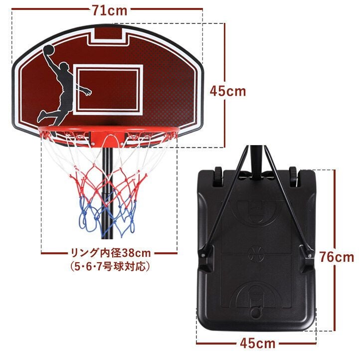 リムのサイズは直径38cmです。公式サイズより小さいですが、5号、6号、7号球に対応しています。