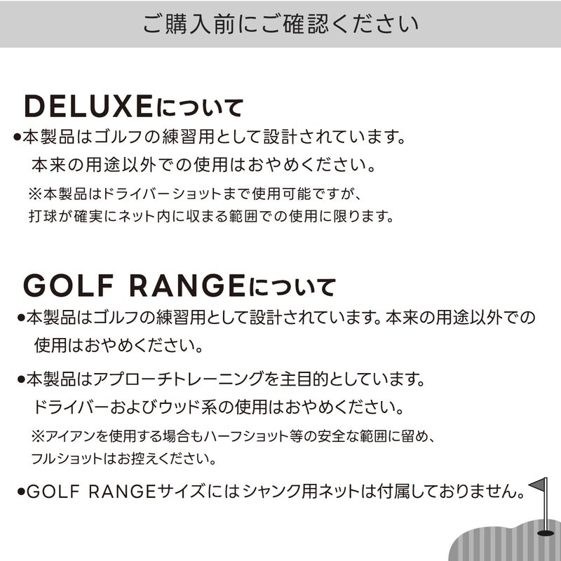 ・ネットの確認:必ず「ドライビングネット」が正しく懸垂・固定されている状態で打球してください。