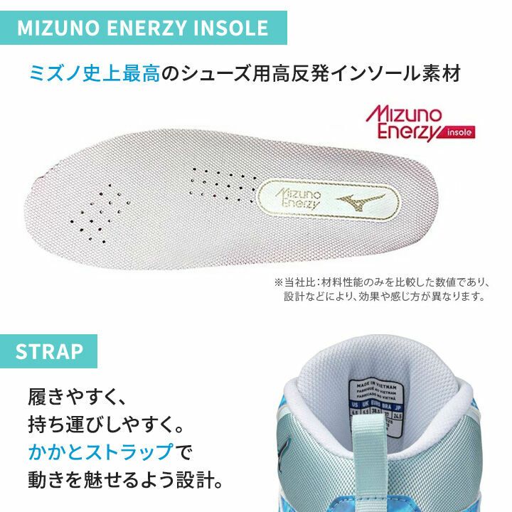 ・ステップ・ターン・ジャンプをサポートするミズノエナジーをインソールとミッドソールに搭載。