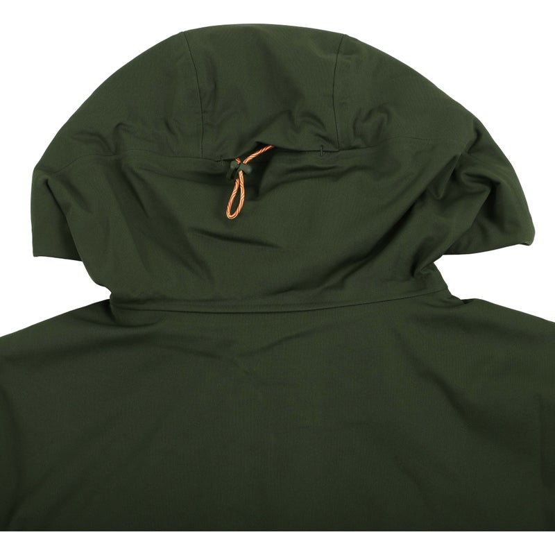 オレンジ配色のフード紐、止水フロントファスナー、大きな左胸ポケット、ジップ付きハンドポケット、袖口調整できる止水ベルクロを備え、秋のアウトドアアクティビティからタウンユースまで幅広くカバーします。