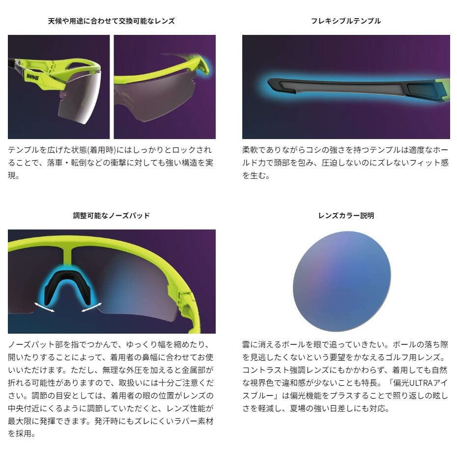 他の画像を見る 即納 スワンズ(SWANS) E-NOX EIGHT8 G2 ULTRA LENS for GOLFモデル メンズ レディース スポーツサングラス EN8G2-0714 販売価格 ¥ 13,728 税込 22%OFF 軽さとフィット感の絶妙なバランスが生み出す、包み込むような快適さ。 詳細を見る お気に入り登録