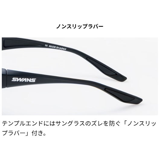 テンプルエンドにはサングラスのズレを防ぐ「ノンスリップラバー」付き。