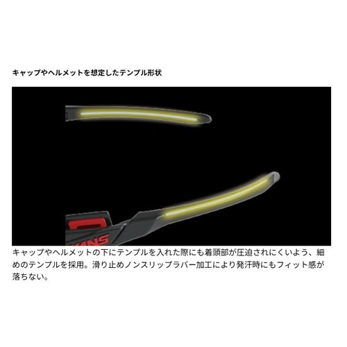 装着者の頭部を掴むようにサイドパッドがこめかみにフィットし、激しい動きをした際に起こりやすいサングラスのブレを抑えます。