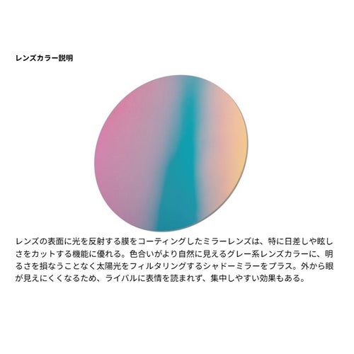 色合いがより自然に見えるグレー系レンズカラーに、明るさを損なうことなく太陽光をフィルタリングするシャドーミラーをプラス。
