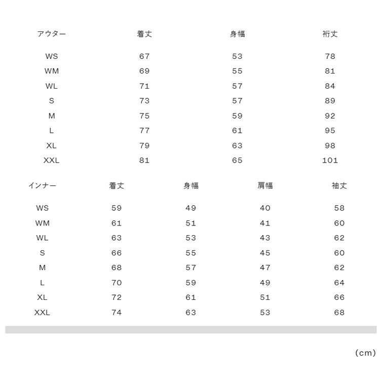 実寸サイズ(cm)[アウター]