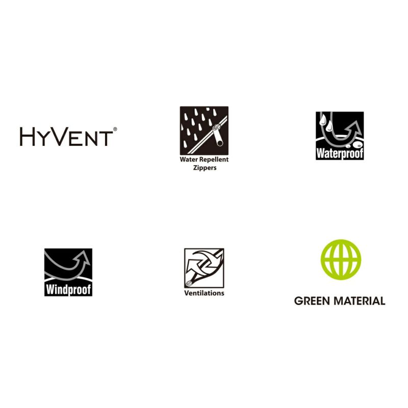 防水性と透湿性を兼ねるハイベントを採用し、70デニールと140デニールの異なる2種類のリサイクルナイロン生地で耐久性をアップ。