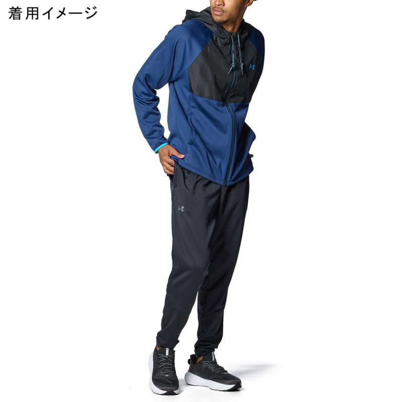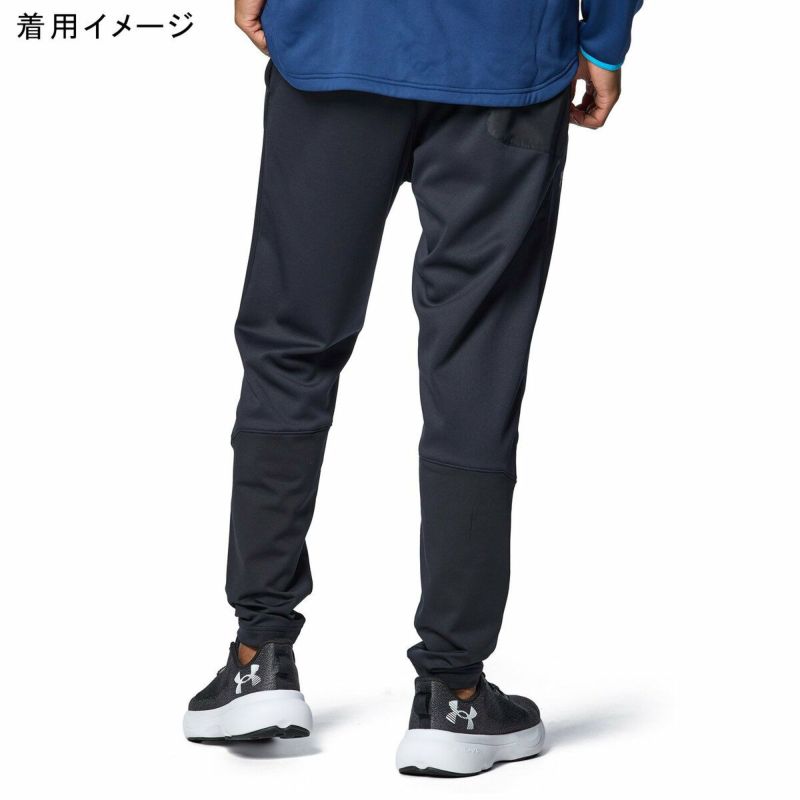 軽量で吸汗速乾性と保温性に優れた快適な着心地のアーマーフリースに撥水加工の「UAストーム」を採用したジョガーパンツ。