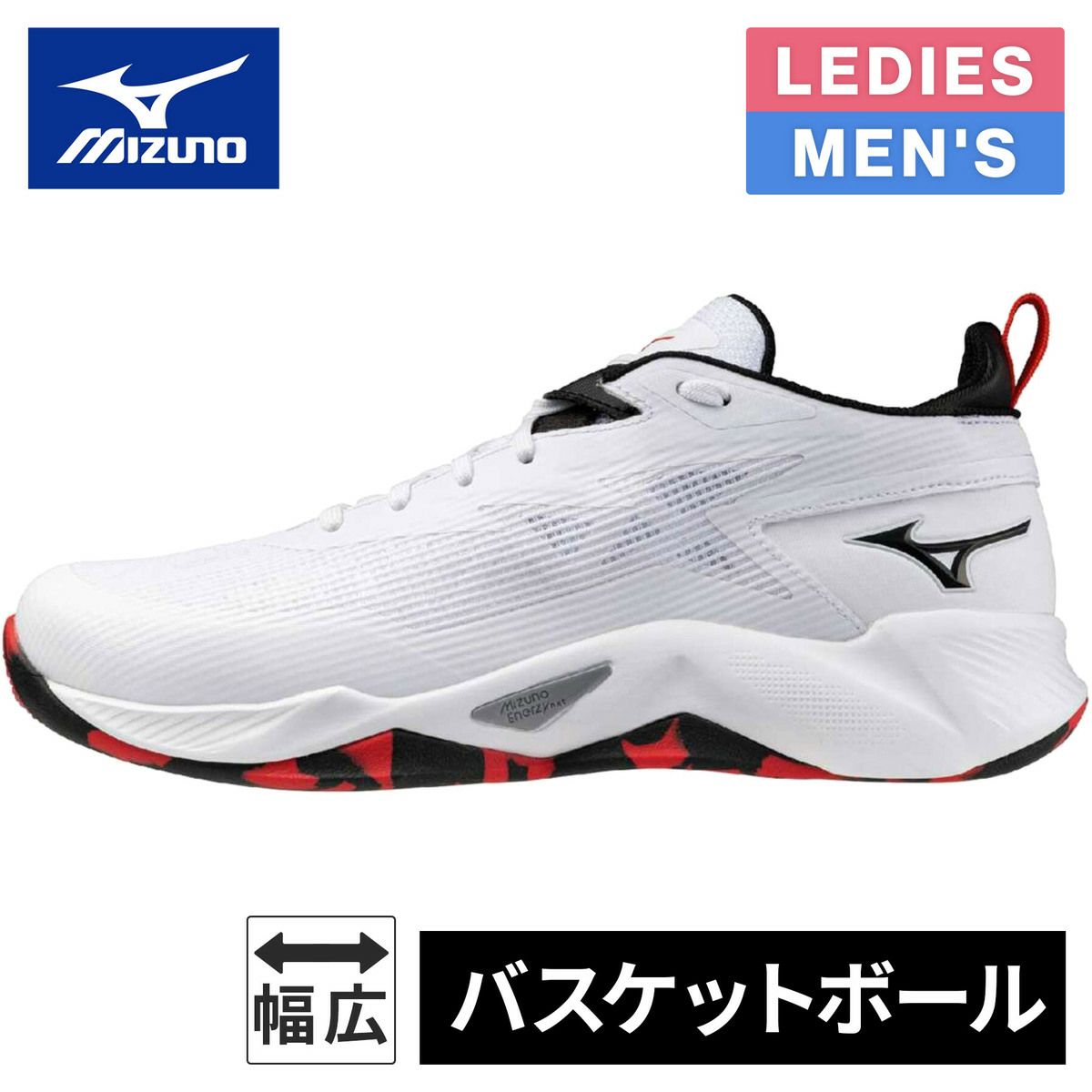 ミズノ(MIZUNO) ウエーブトランジスタ WAVE TRANSISTA メンズ レディース バスケットボールシューズ ホワイト×ブラック×レッド W1GA2400 11