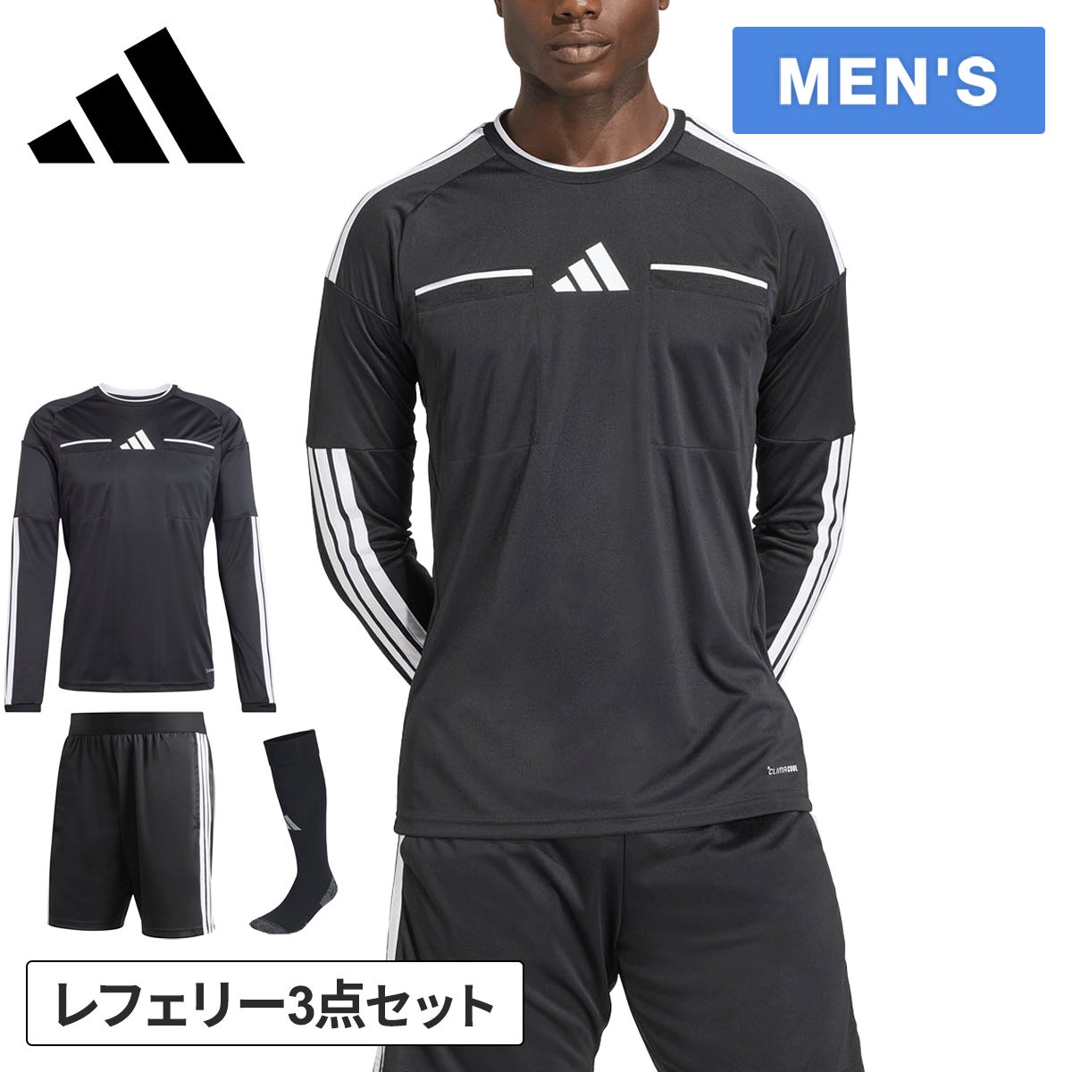 アディダス(adidas) メンズ レフェリー長袖シャツ VE081 & ショーツ DB694 & ソックス EQ554 計3点セット