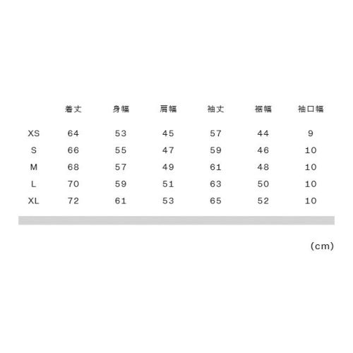 実寸サイズ(cm)XS:着丈64、身幅53、肩幅45、袖丈57、裾幅44、袖口幅9