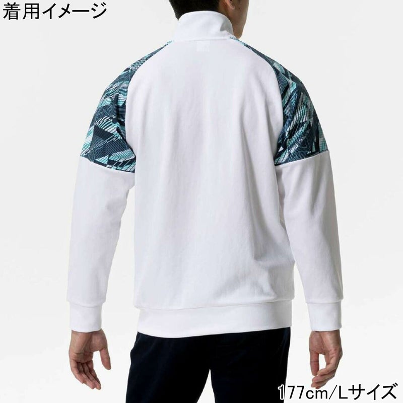 頑張るブカツ生を応援する思いを込めた、両肩のグラフィックが目を引く吸汗速乾素材を使用したウォームアップジャケット。