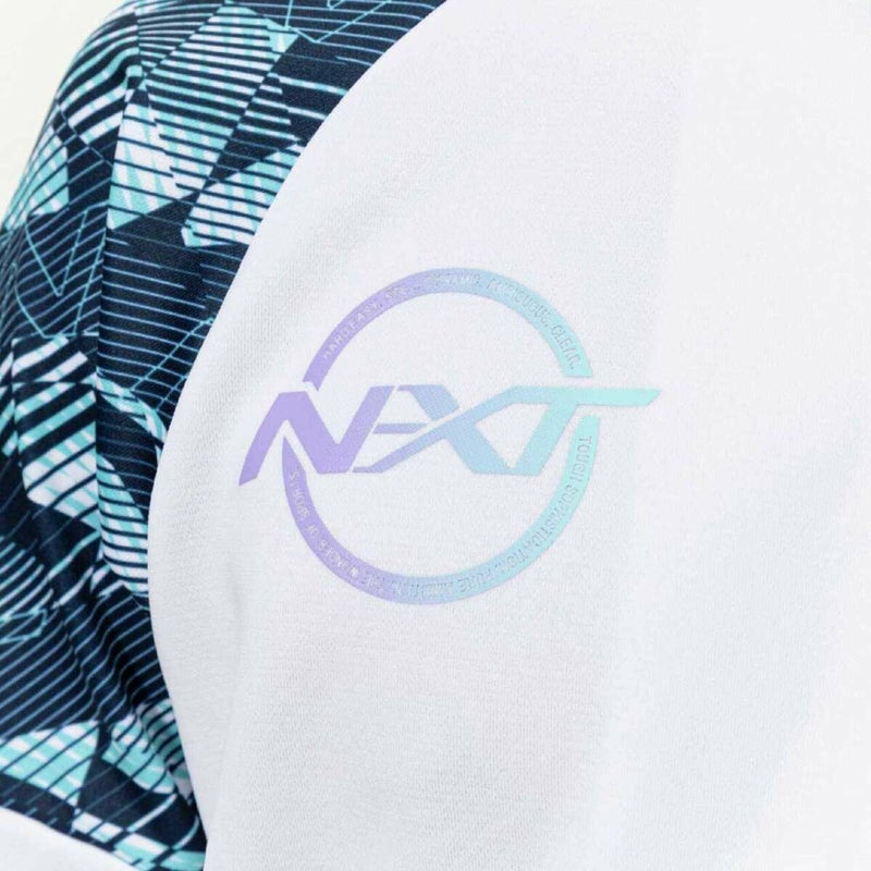 *両肩口のグラフィックはデジタル時代の感性をN-XTロゴとミックスし、新時代を駆け抜けるアスリート(部活生)の気分を上げるデジカモ柄(デジタルカモ柄)を表現している。