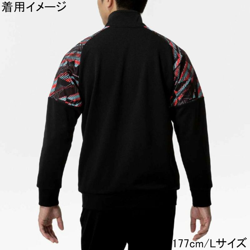 頑張るブカツ生を応援する思いを込めた、両肩のグラフィックが目を引く吸汗速乾素材を使用したウォームアップジャケット。