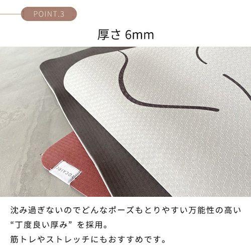 ・ヨガはもちろん、フォームローラーや筋トレにも最適な万能性の高い6mm厚。