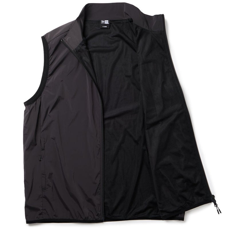 撥水性のあるウーブン素材とメッシュ裏地を組み合わせた軽快なベスト。