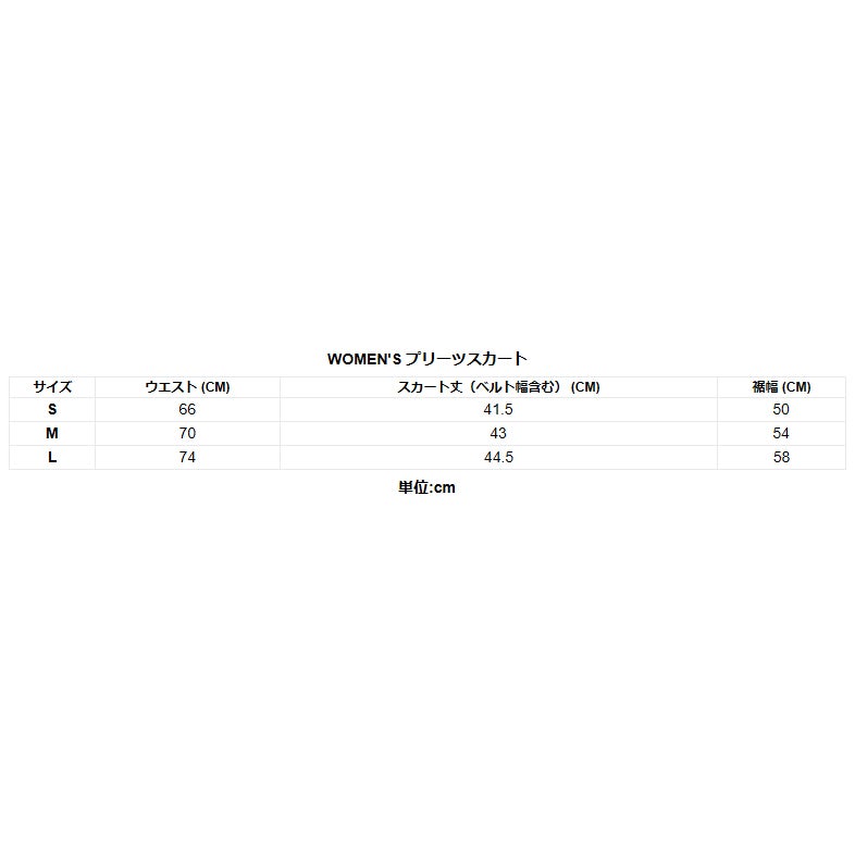 サイズ(cm)S:ウエスト66、スカート丈(ベルト幅含む)41.5、裾幅50