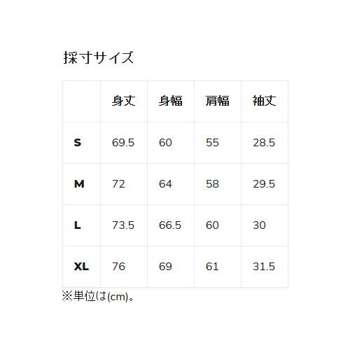 採寸サイズ(cm)S:身丈69.5、身幅60、肩幅55、袖丈28.5