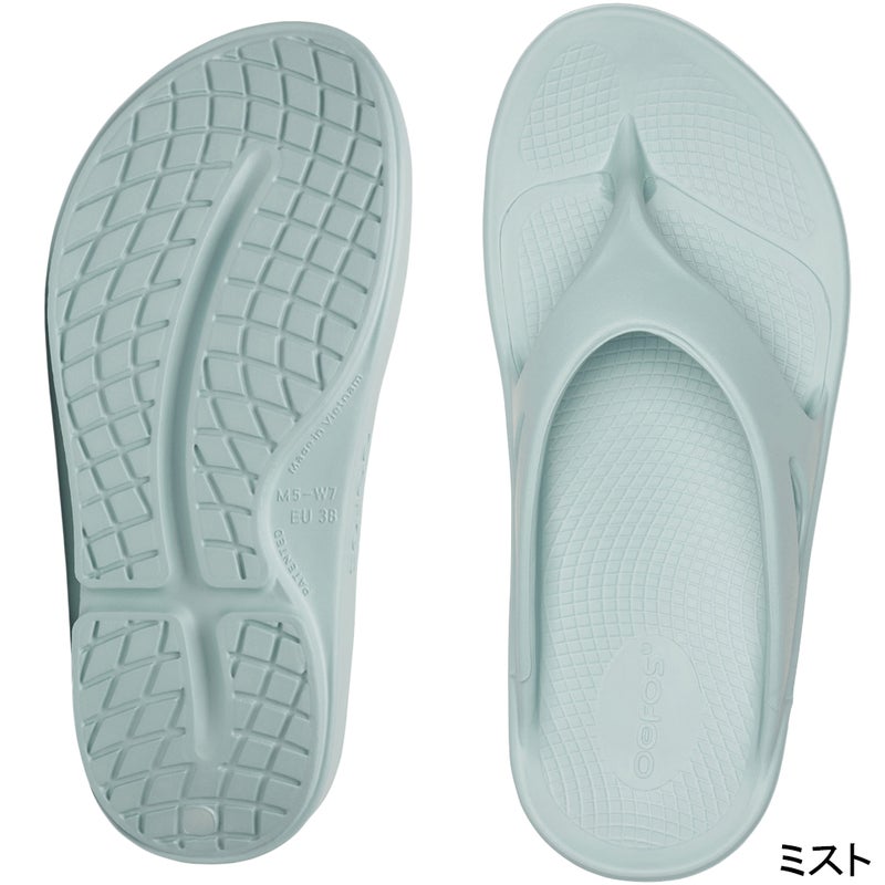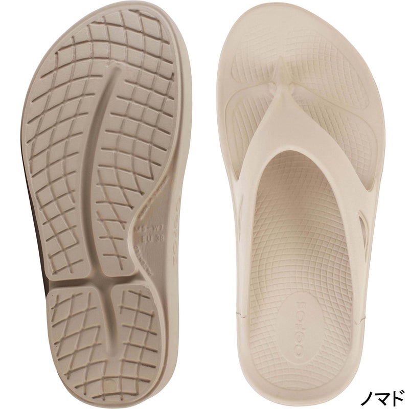 OOFOS(R)製品に使われている特殊素材OOfoamは、前進力を生むことを目的とした一般的なEVA素材のミッドソールと異なり、衝撃の反発を37%抑えることができ着地による足裏への衝撃を軽減することができます。