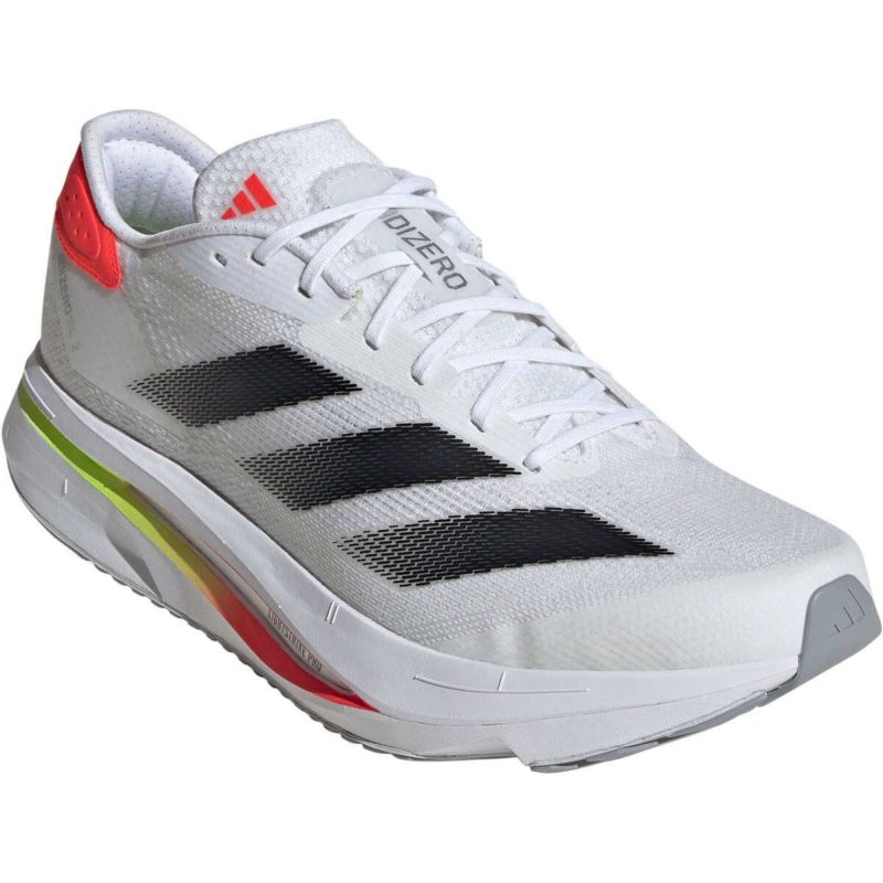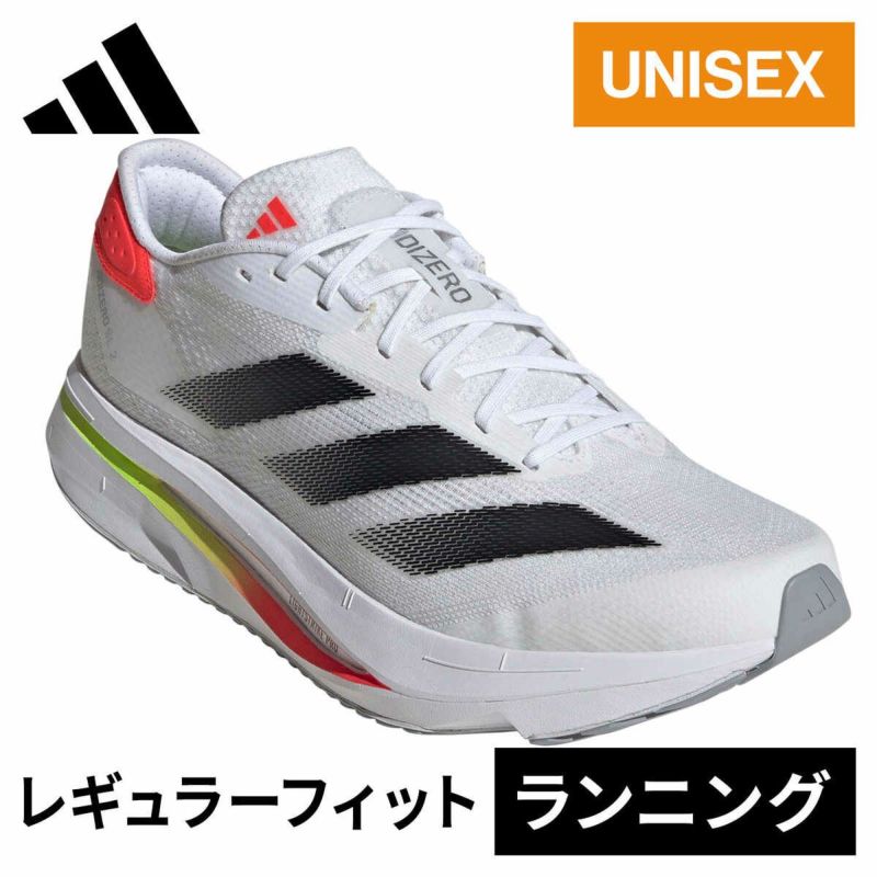 このアディダスアディゼロランニングシューズは、キビキビと反応の良い走りを導くLIGHTSTRIKE PROと、エネルギーの反発を異次元のスピードに変える軽量クッショニングが特徴。